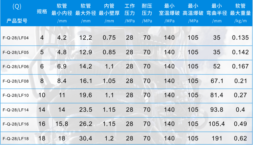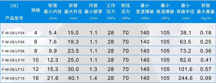 28MPa芳纶编织特氟龙软管